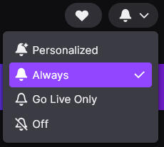Make sure your Twitch notifications are set to always.